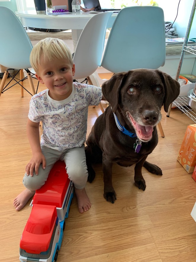 About six months later Roxy ended up unintentionally alerting us to Eric’s tumor. Without her jumping into his arms, his cancer would have progressed and our three years together after diagnosis would have been much shorter. During his chemo treatments Roxy was a constant comfort to both of us. I felt so much less guilt going to work knowing that Eric would have Roxy there with him all day. It was like the three of us were a core little unit of unconditional love. The three of us at home was our safe place. (Not to negate the love and support of our family and friends – this is just a tribute to Roxy) Anytime we cried she would crawl up in our laps and try to lick the tears off our face (gross, I know, but the sentiment is sweet). She could sense changes in blood pressure or heart rate and would come lay down by us whenever we were stressed. I think she even knew a few curse words and had the good sense to stay away if she heard them. She was just the absolute most sensitive soul. After Eric was in remission we even went through the process of having her trained as one of those therapy dogs that goes to visit people in the hospitals. She was someone that even people who didn’t like dogs were okay being around. And when Arie was born, she was so sweet and patient – letting him climb all over her, pull her tail, tug her ears. She never got mad, never reacted…just looked over at us with eyes that seemed to say, “if you’re not going to save me, I guess I’ll just let it happen because that’s how much I love you”. After Eric died Roxy became even more attached to me – I ended up having to give her anxiety meds anytime I left her to go overnight somewhere. It felt awful leaving her because she was so sad, but coming home was always such a treat because she would cry and nuzzle into me so hard it would knock me over. A dogs love is so powerful.